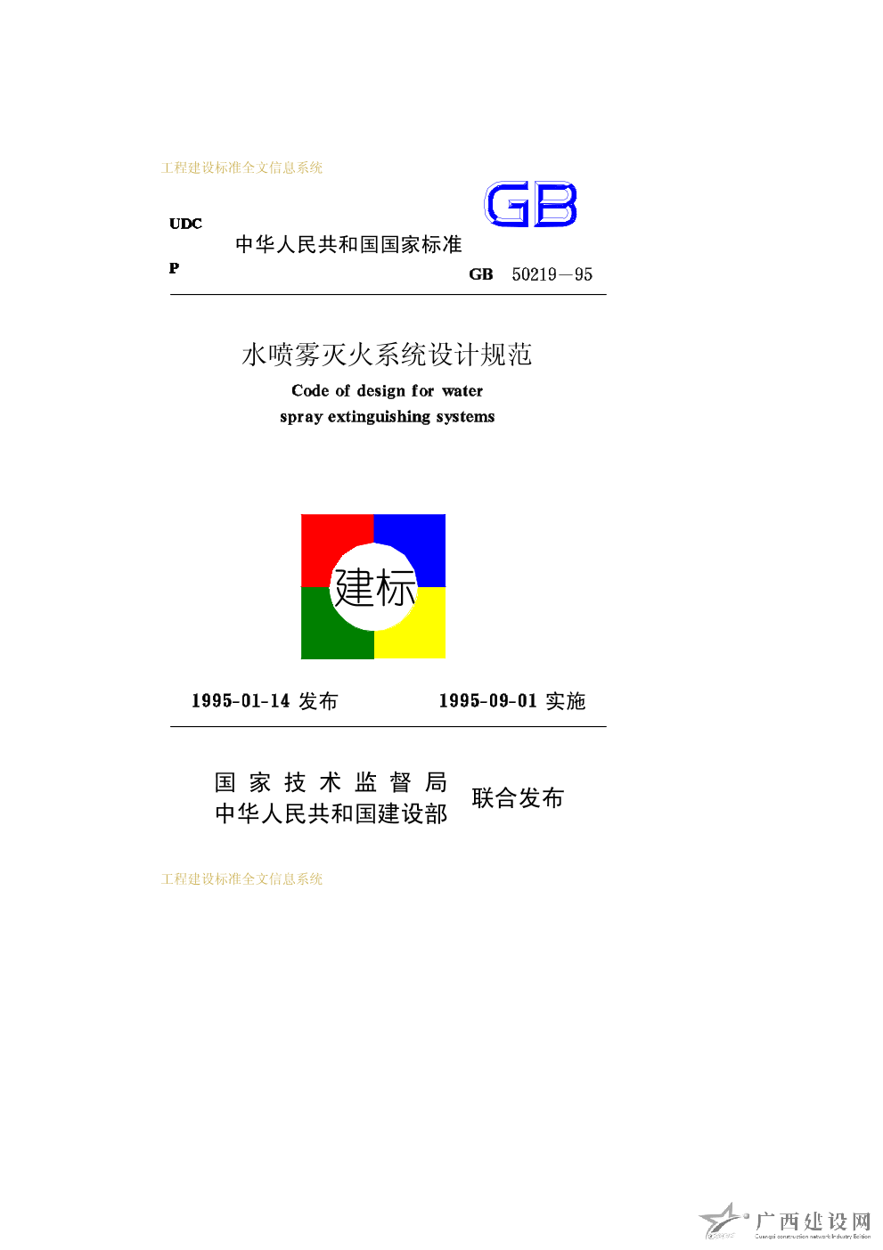 水噴霧滅火系統(tǒng)設(shè)計(jì)規(guī)范 GB50219-95