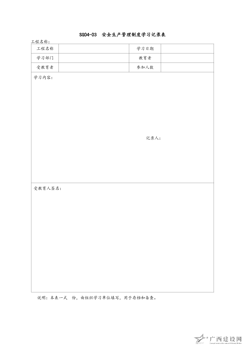 安全文化活動記錄表