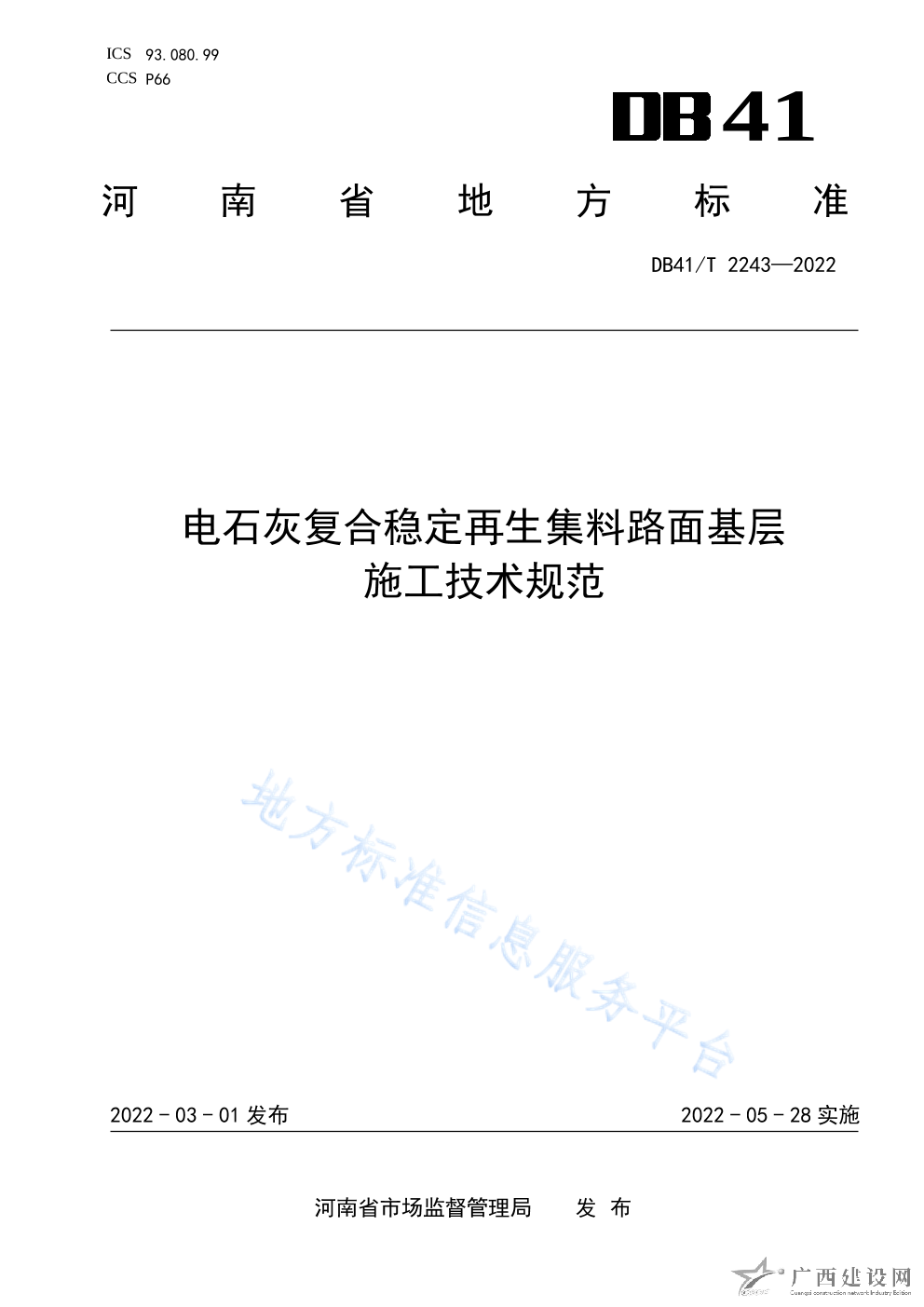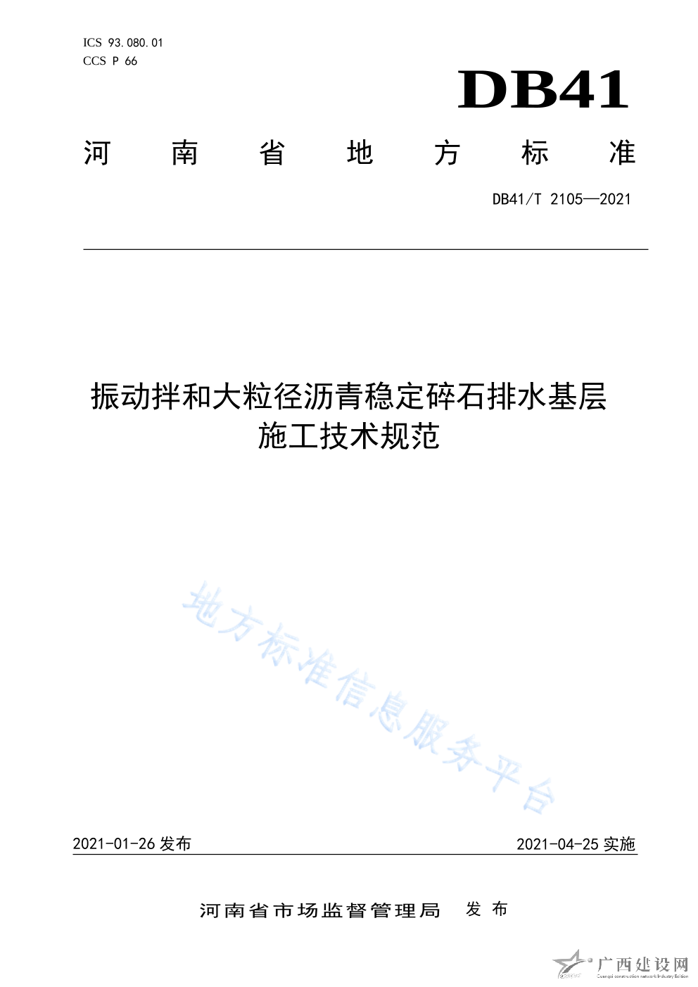 DB41 T1419-2017振動拌和骨架密實水泥穩定碎石基層施工技術規范