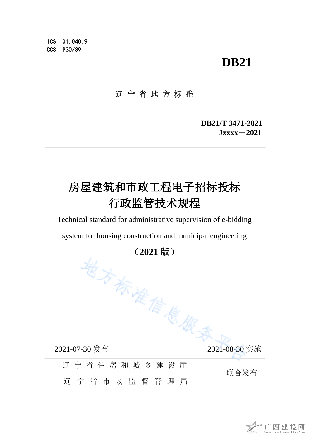 DB21 T3471-2021房屋建筑和市政工程電子招標投標行政監管技術規程