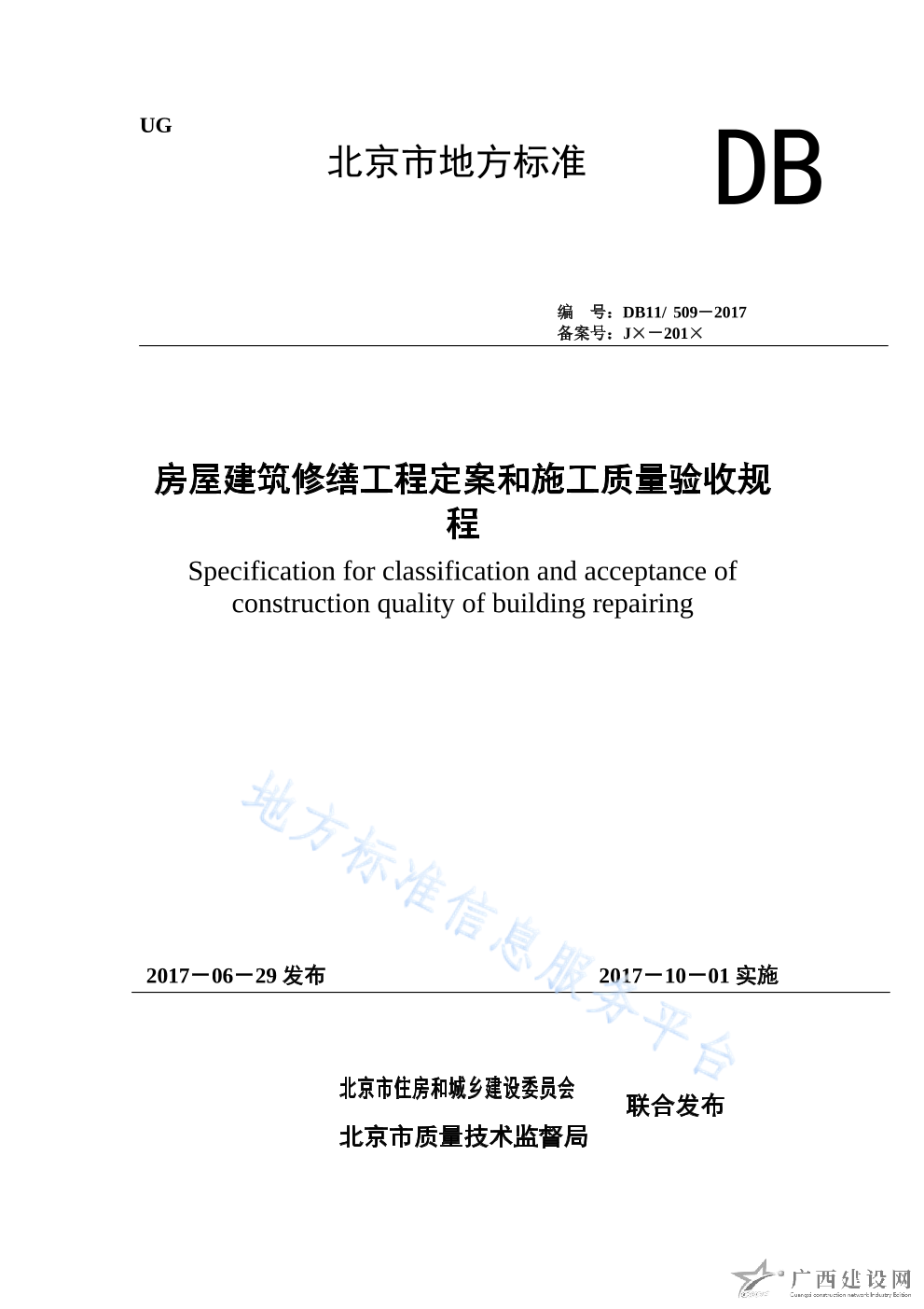 DB11 _509-2017房屋建筑修繕工程定案和施工質量驗收規程