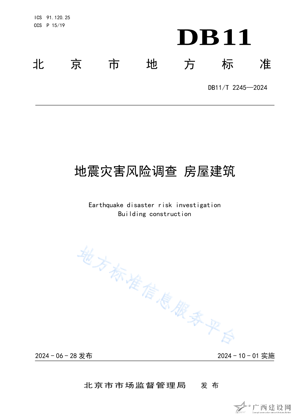 DB11T 2245-2024地震災害風險調查 房屋建筑