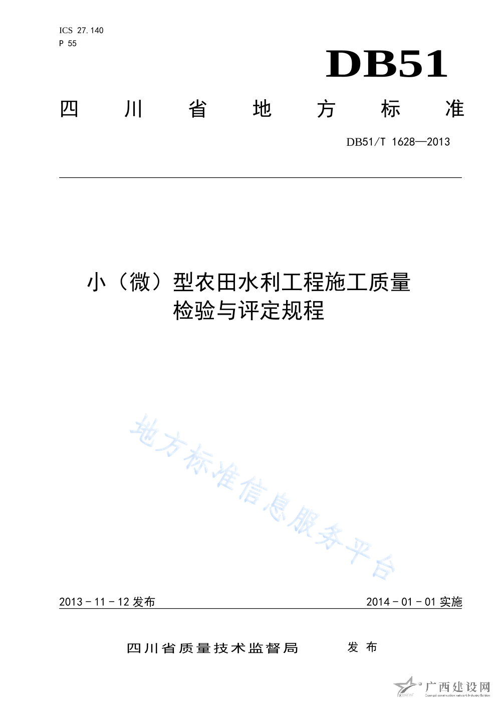 DB51 T1627 -2013渠道工程施工質(zhì)量檢驗與評定規(guī)程