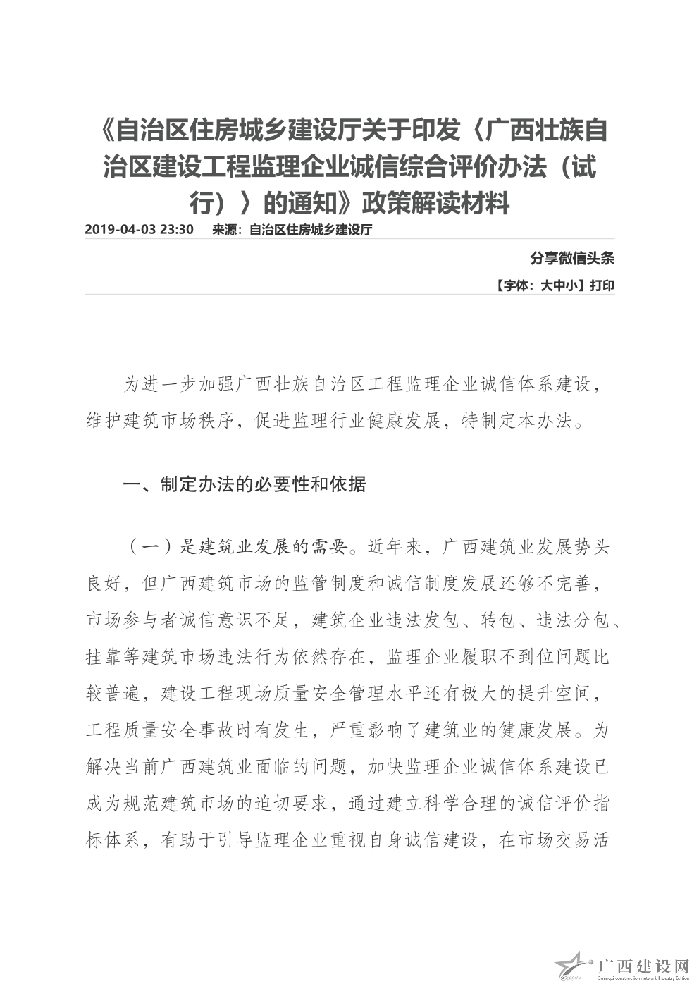 《自治區(qū)住房城鄉(xiāng)建設(shè)廳關(guān)于印發(fā)〈廣西壯族自治區(qū)建設(shè)工程監(jiān)理企業(yè)誠(chéng)信綜合評(píng)價(jià)辦法(試行)〉的通知》政策解讀材料