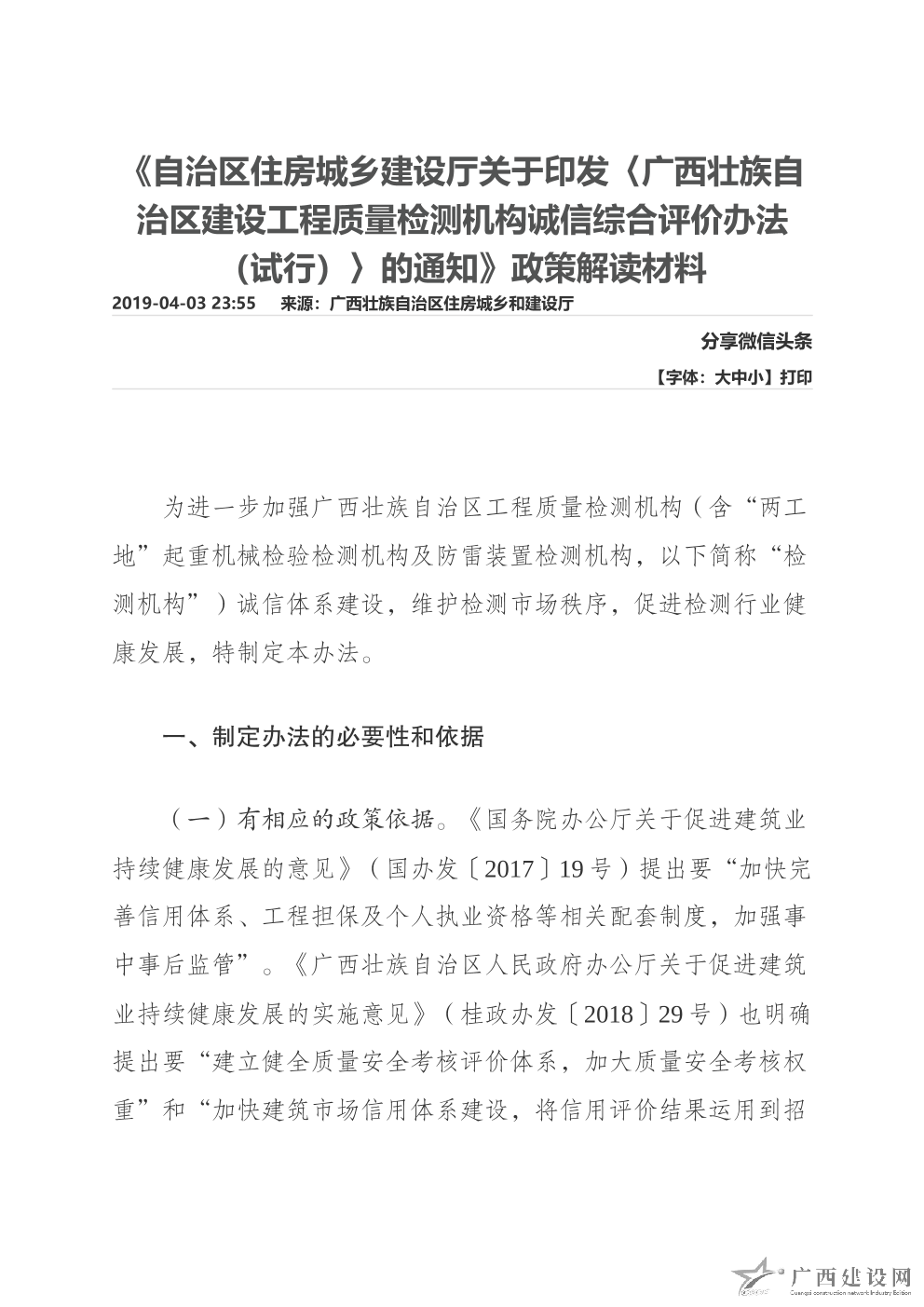 《自治區(qū)住房城鄉(xiāng)建設(shè)廳關(guān)于印發(fā)〈廣西壯族自治區(qū)建設(shè)工程質(zhì)量檢測(cè)機(jī)構(gòu)誠(chéng)信綜合評(píng)價(jià)辦法(試行)〉的通知》政策解讀材料