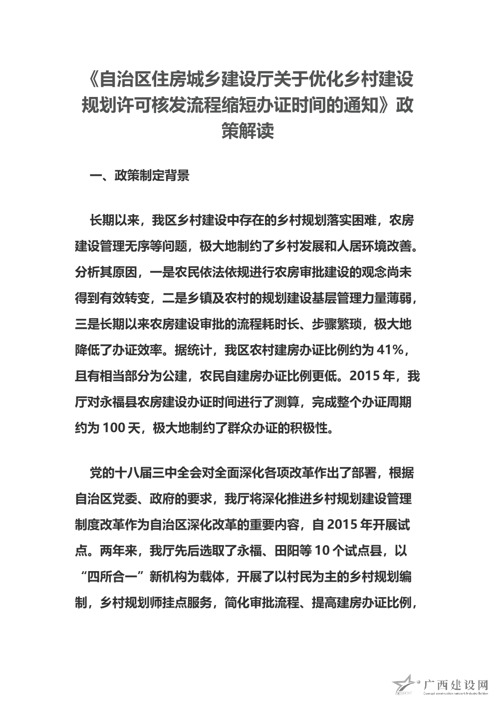 《自治區(qū)住房城鄉(xiāng)建設(shè)廳關(guān)于優(yōu)化鄉(xiāng)村建設(shè)規(guī)劃許可核發(fā)流程縮短辦證時(shí)間的通知》政策解讀