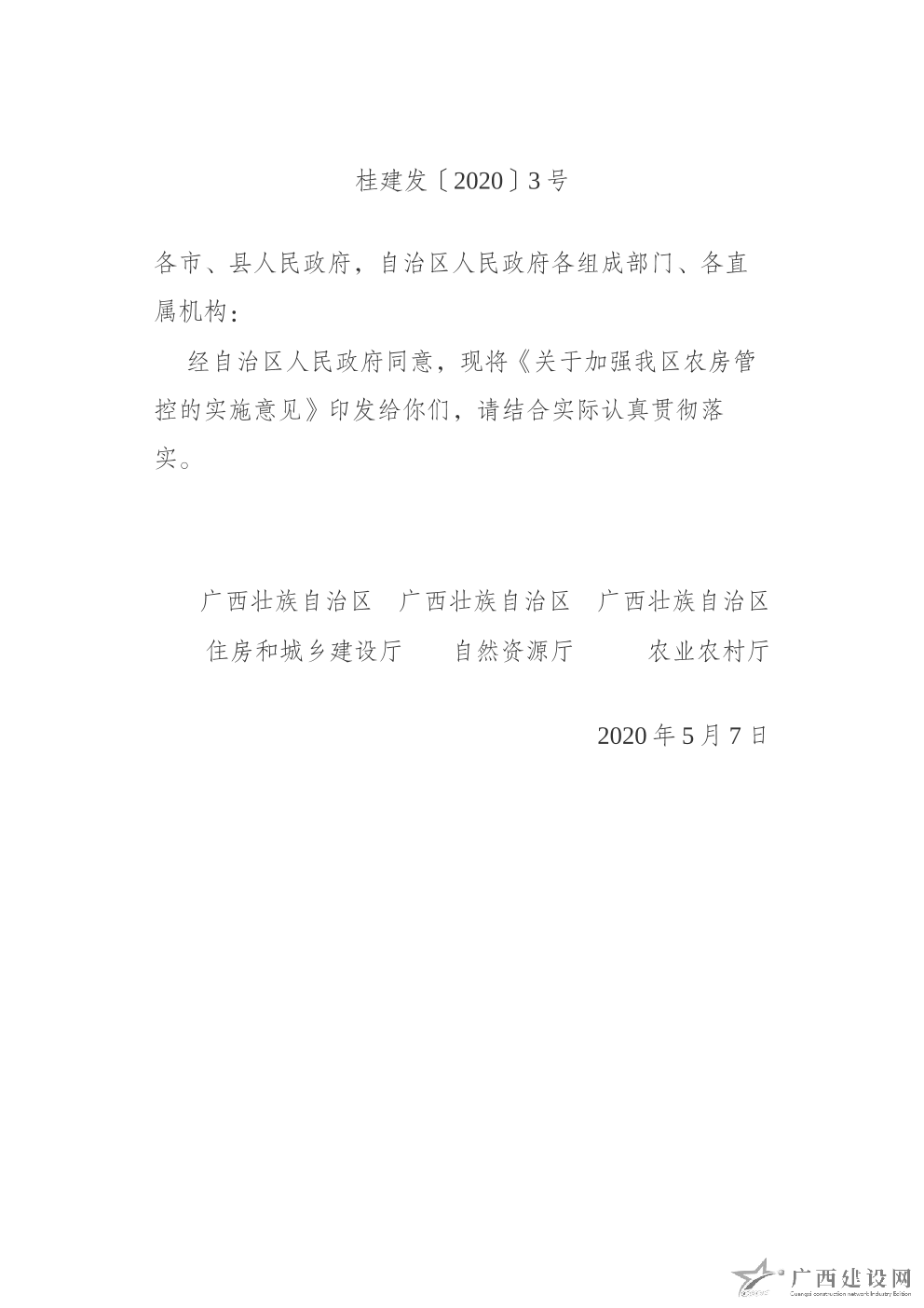 自治區(qū)住房城鄉(xiāng)建設(shè)廳 自治區(qū)自然資源廳 自治區(qū)農(nóng)業(yè)農(nóng)村廳關(guān)于印發(fā)加強(qiáng)我區(qū)農(nóng)房管控的實(shí)施意見(jiàn)的通知