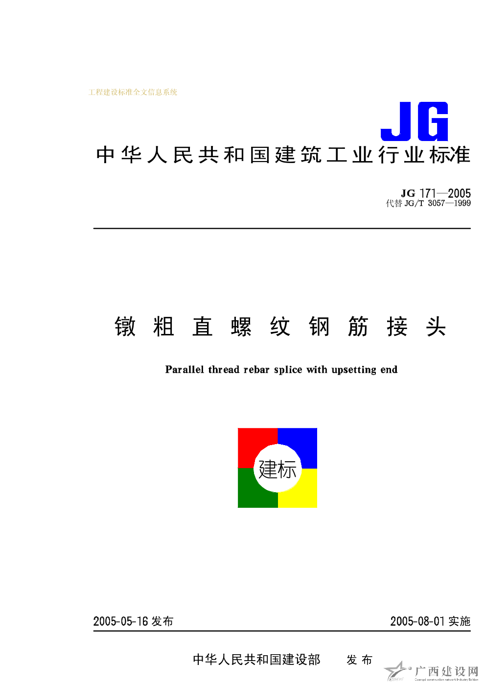 鐓粗直螺紋鋼筋接頭 JG171-2005