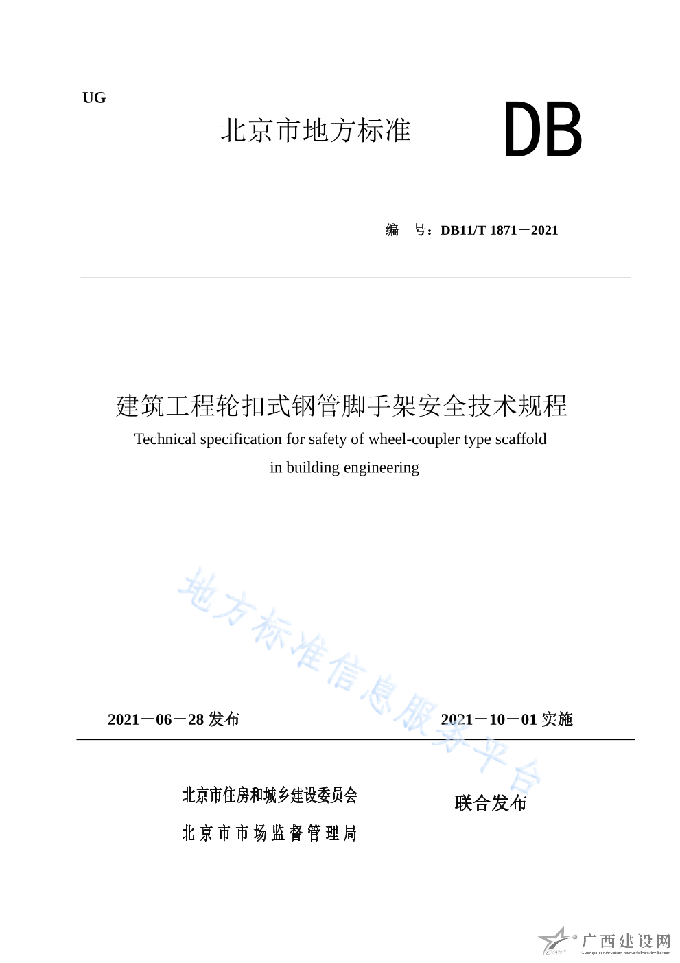 DB11 T+1871-2021建筑工程輪扣式鋼管腳手架安全技術規程