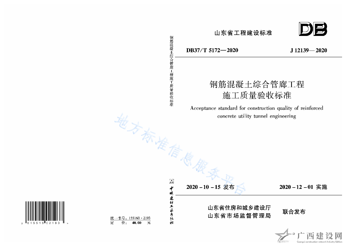 DB37 T5110-2018城市地下綜合管廊工程施工及驗收規范