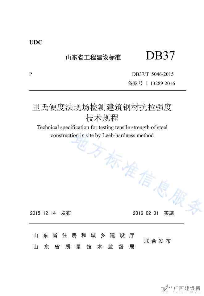DB37 T5169-2020印痕法檢測建筑鋼材強度技術(shù)規(guī)程
