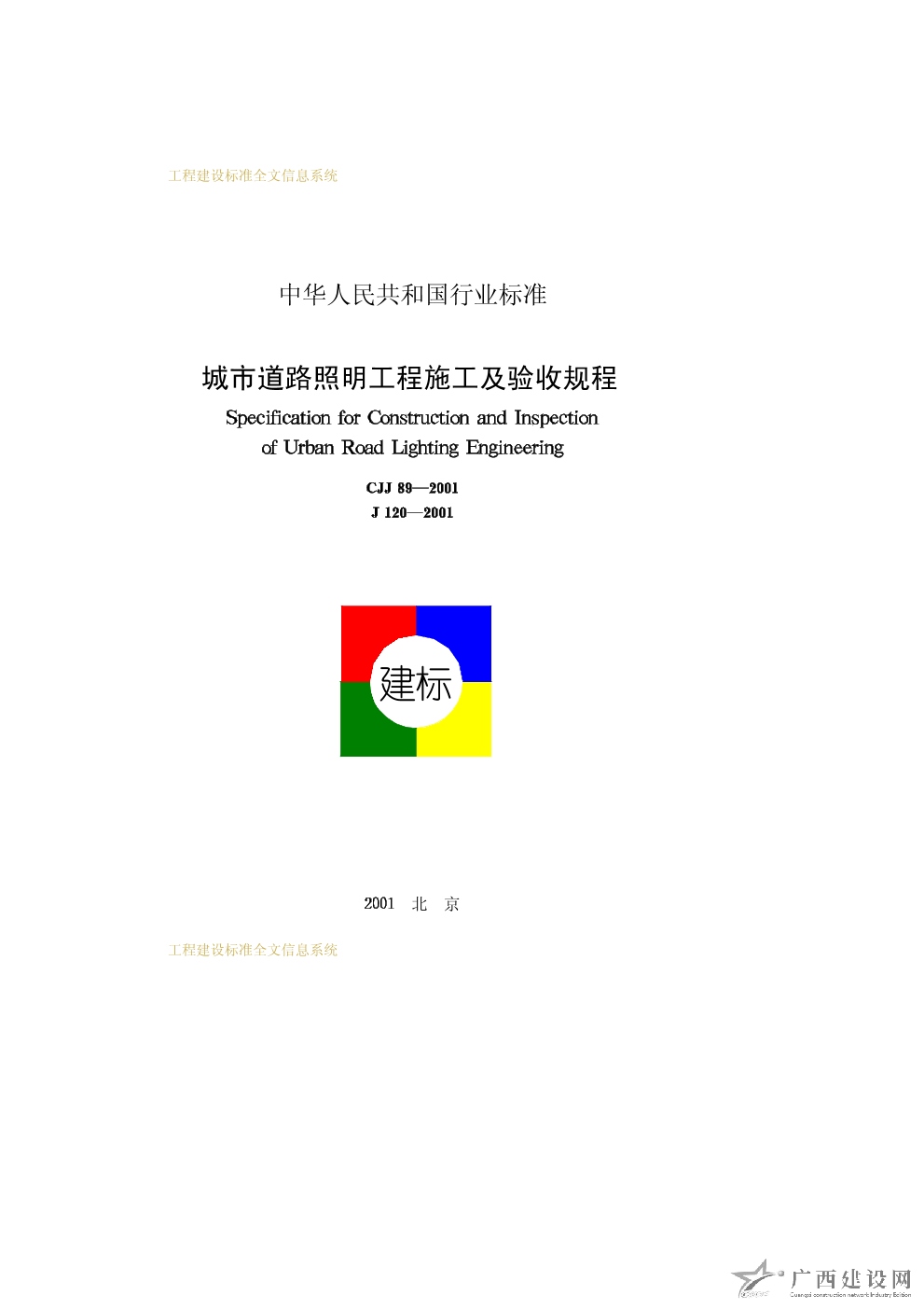 城市道路照明工程施工及驗(yàn)收規(guī)程 CJJ89—2001