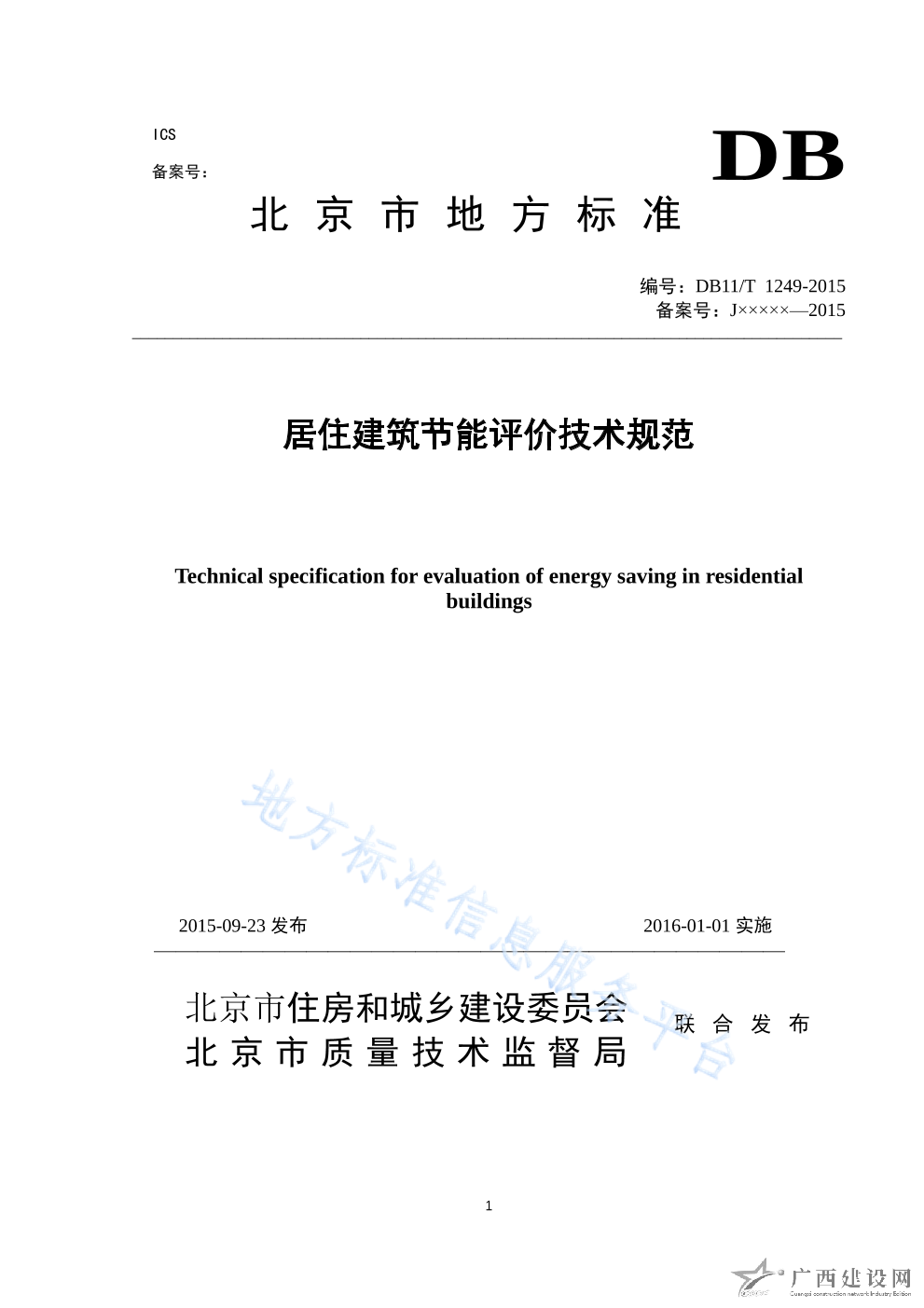 DB11 T_1249-2015居住建筑節(jié)能評價技術(shù)規(guī)范