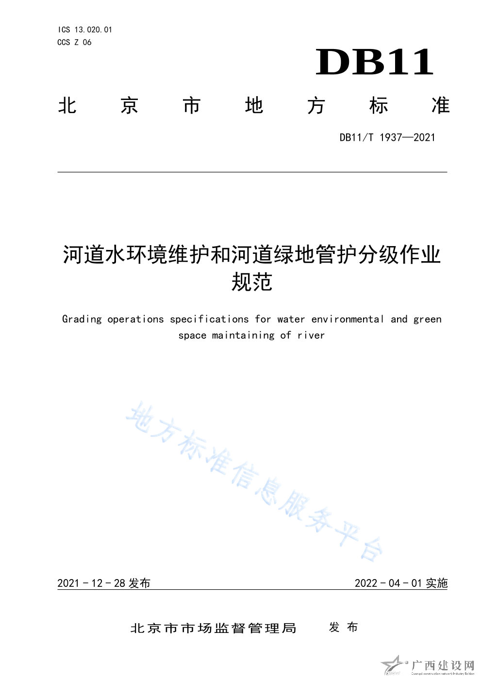 DB11 T+1937-2021河道水環(huán)境維護和河道綠地管護分級作業(yè)規(guī)范