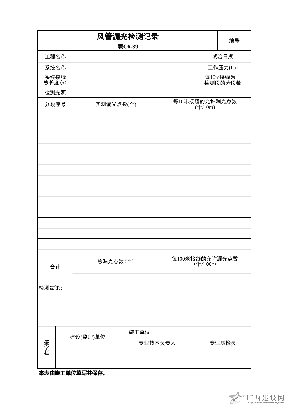 風管漏風檢測記錄