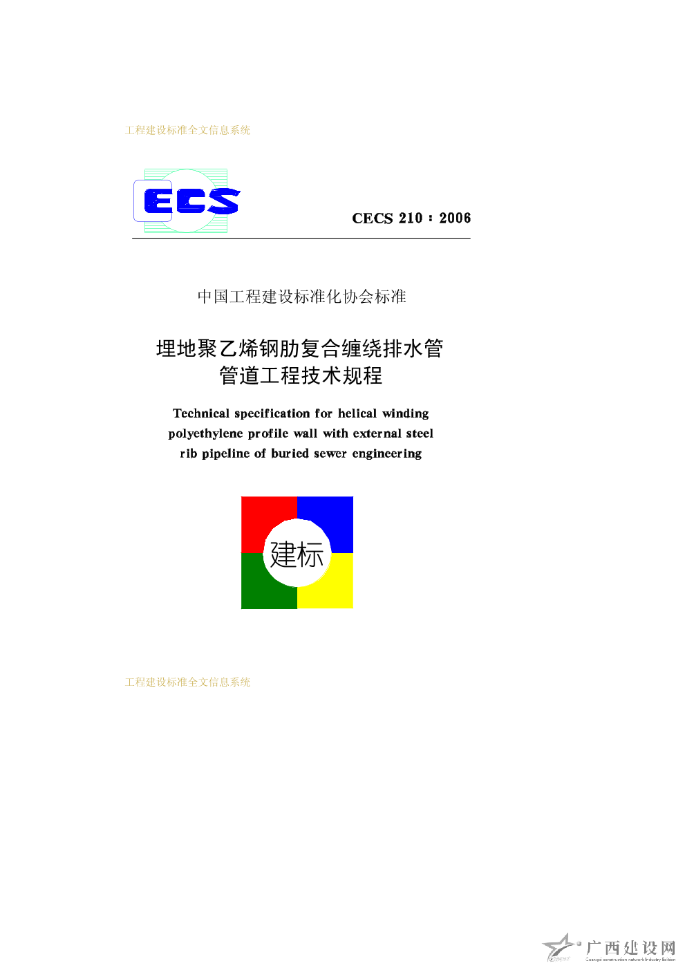 埋地聚乙烯鋼肋復合纏繞排水管管道工程技術規程 CECS210