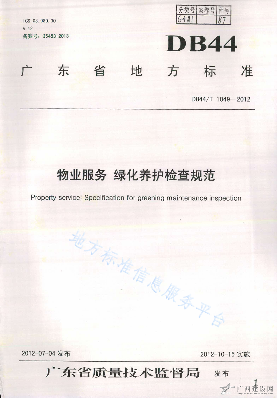 DB44 T1049-2012物業(yè)服務(wù) 綠化養(yǎng)護(hù)檢查規(guī)范