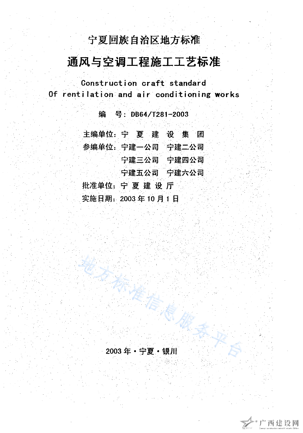 DB64 281-2003通風(fēng)與空調(diào)工程施工工藝標(biāo)準(zhǔn)