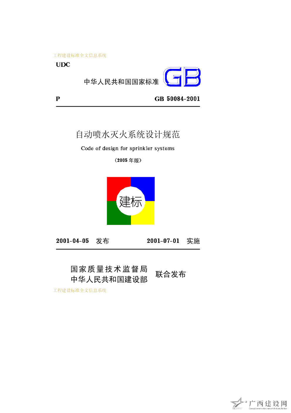 自動(dòng)噴水滅火系統(tǒng)設(shè)計(jì)規(guī)范(2005年版) GB50084-2001