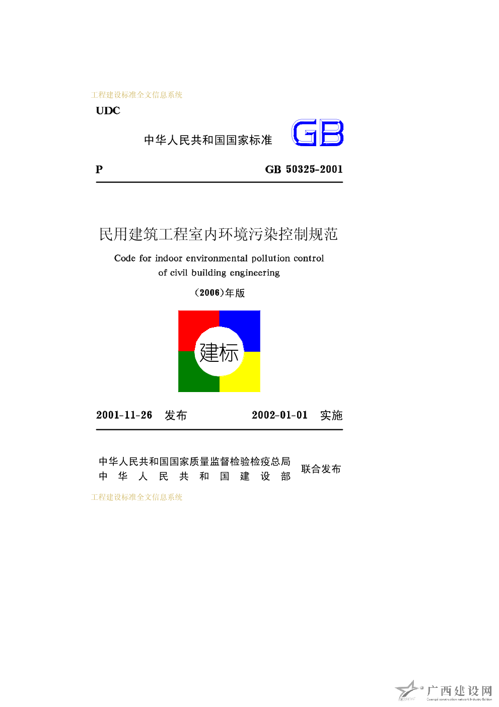 民用建筑工程室內(nèi)環(huán)境污染控制規(guī)范(2006年版) GB50325-2001