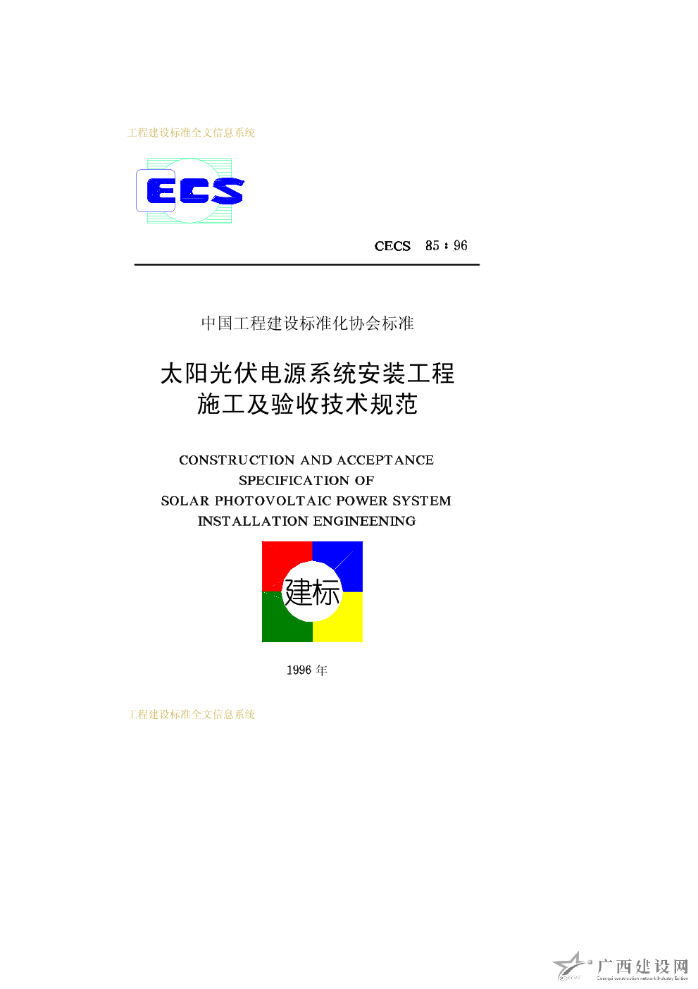 太陽光伏電源系統(tǒng)安裝工程施工及驗收技術規(guī)范 CECS85∶96