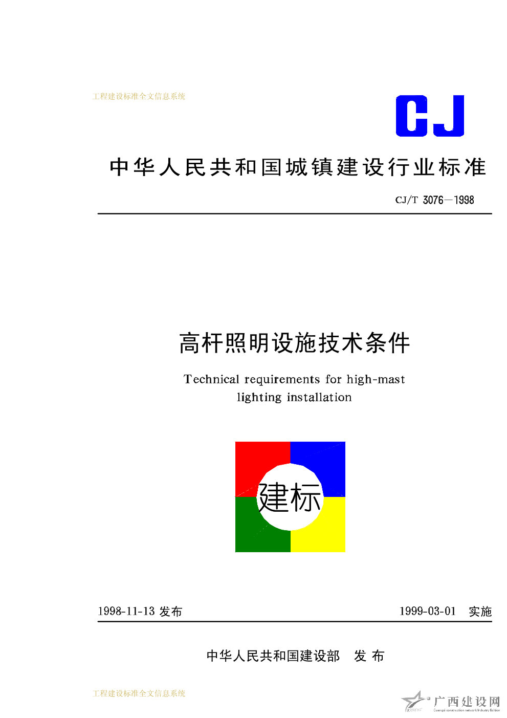 高桿照明設(shè)施技術(shù)條件 CJ/T3076-1998