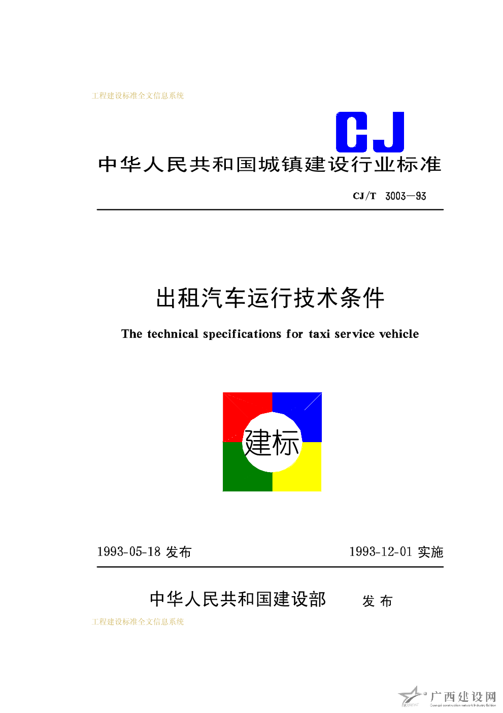 出租汽車(chē)運(yùn)行技術(shù)條件 CJ/T3003-93