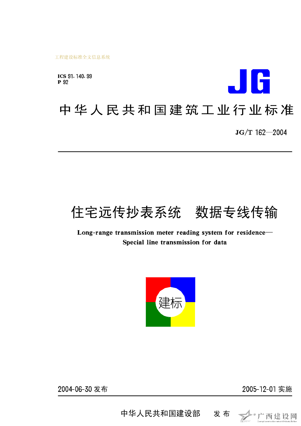 JG T162-2017民用建筑遠(yuǎn)傳抄表系統(tǒng)