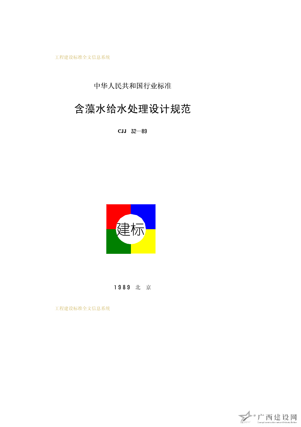 含藻水給水處理設(shè)計規(guī)范 CJJ32—89