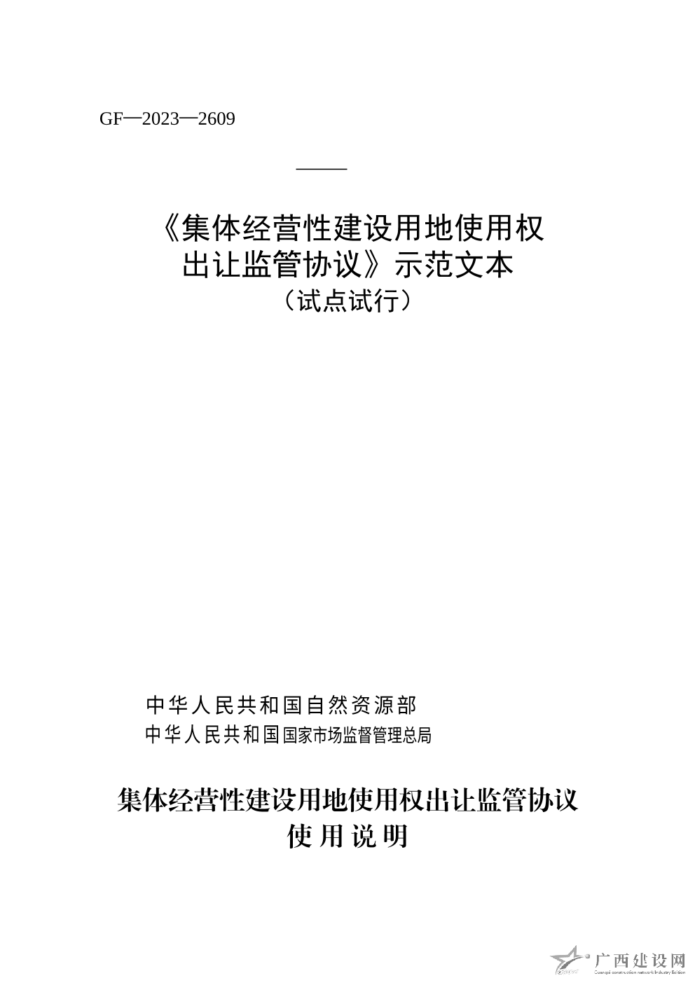 《集體經(jīng)營(yíng)性建設(shè)用地使用權(quán)出讓監(jiān)管協(xié)議》示范文本(試點(diǎn)試行)