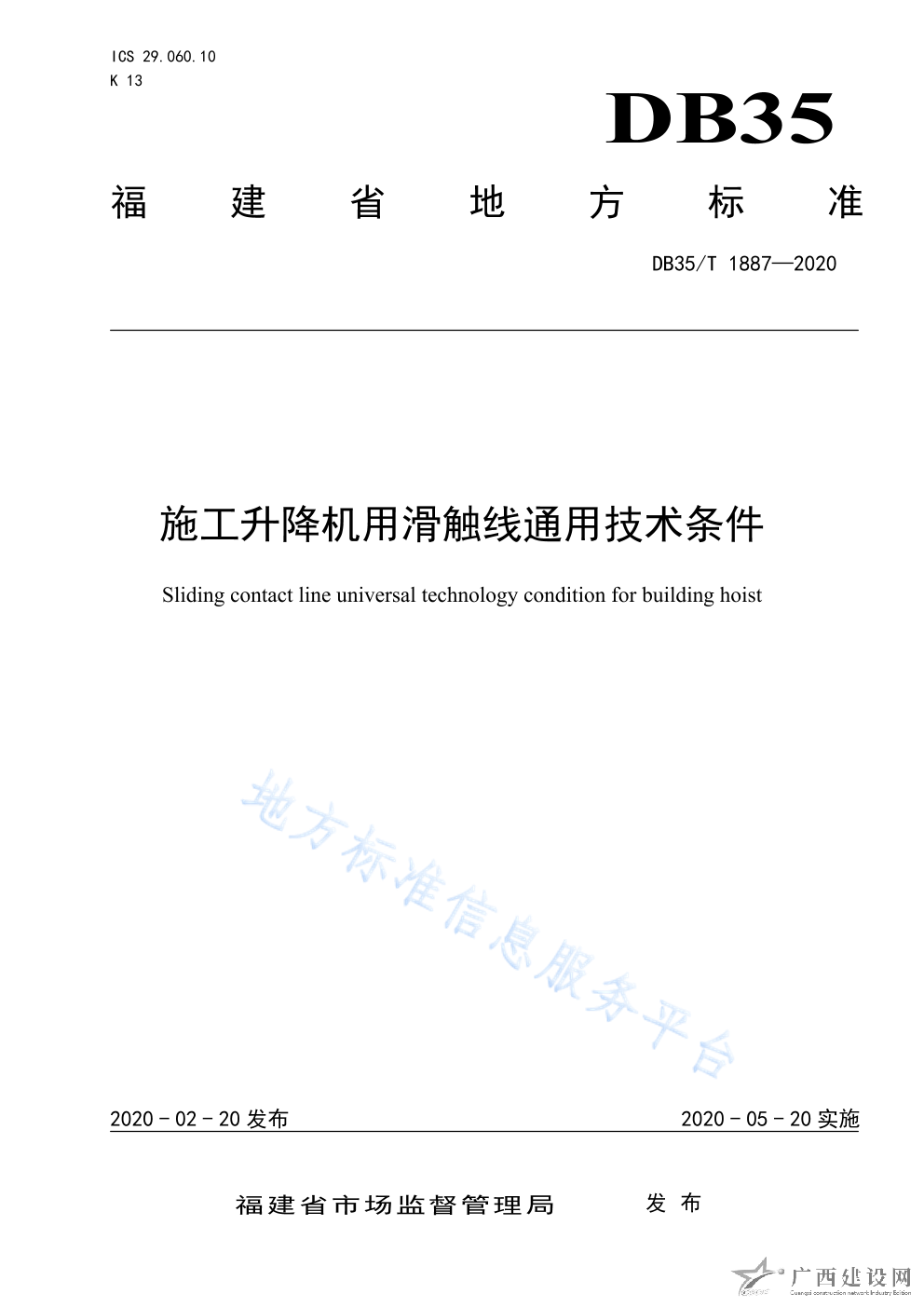 DB35 T1887-2020施工升降機(jī)用滑觸線通用技術(shù)條件