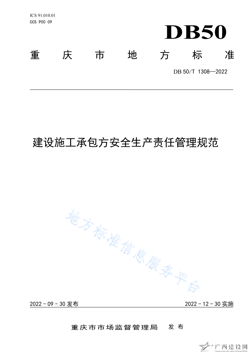 DB50 T1308-2022建設(shè)施工承包方安全生產(chǎn)責(zé)任規(guī)范