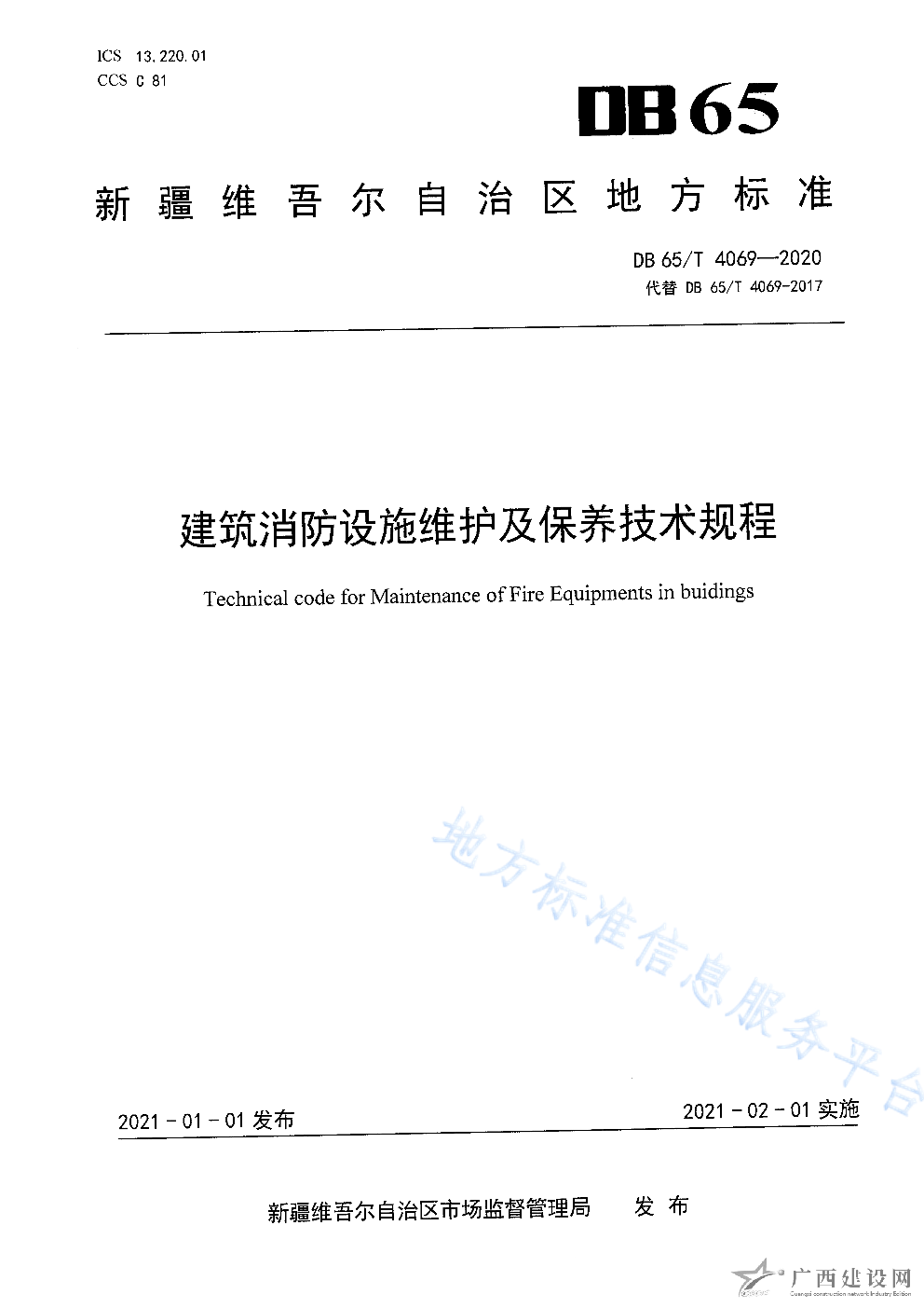 DB65 T4069-2020建筑消防設(shè)施維護(hù)及保養(yǎng)技術(shù)規(guī)范