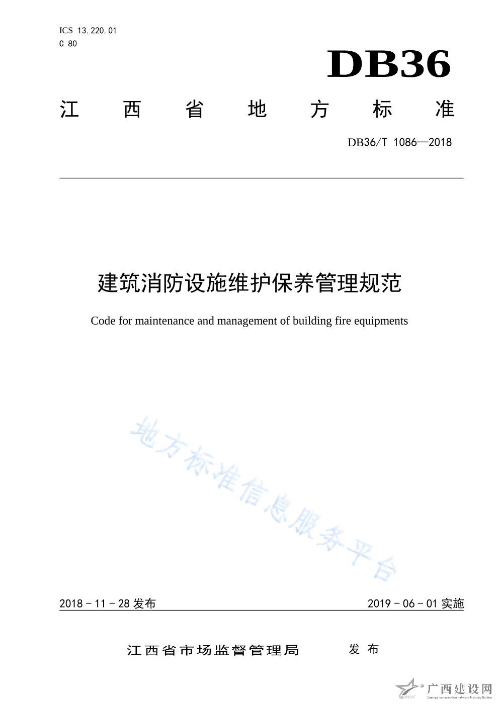 DB36 T1086-2018建筑消防設(shè)施維護(hù)保養(yǎng)管理規(guī)范1