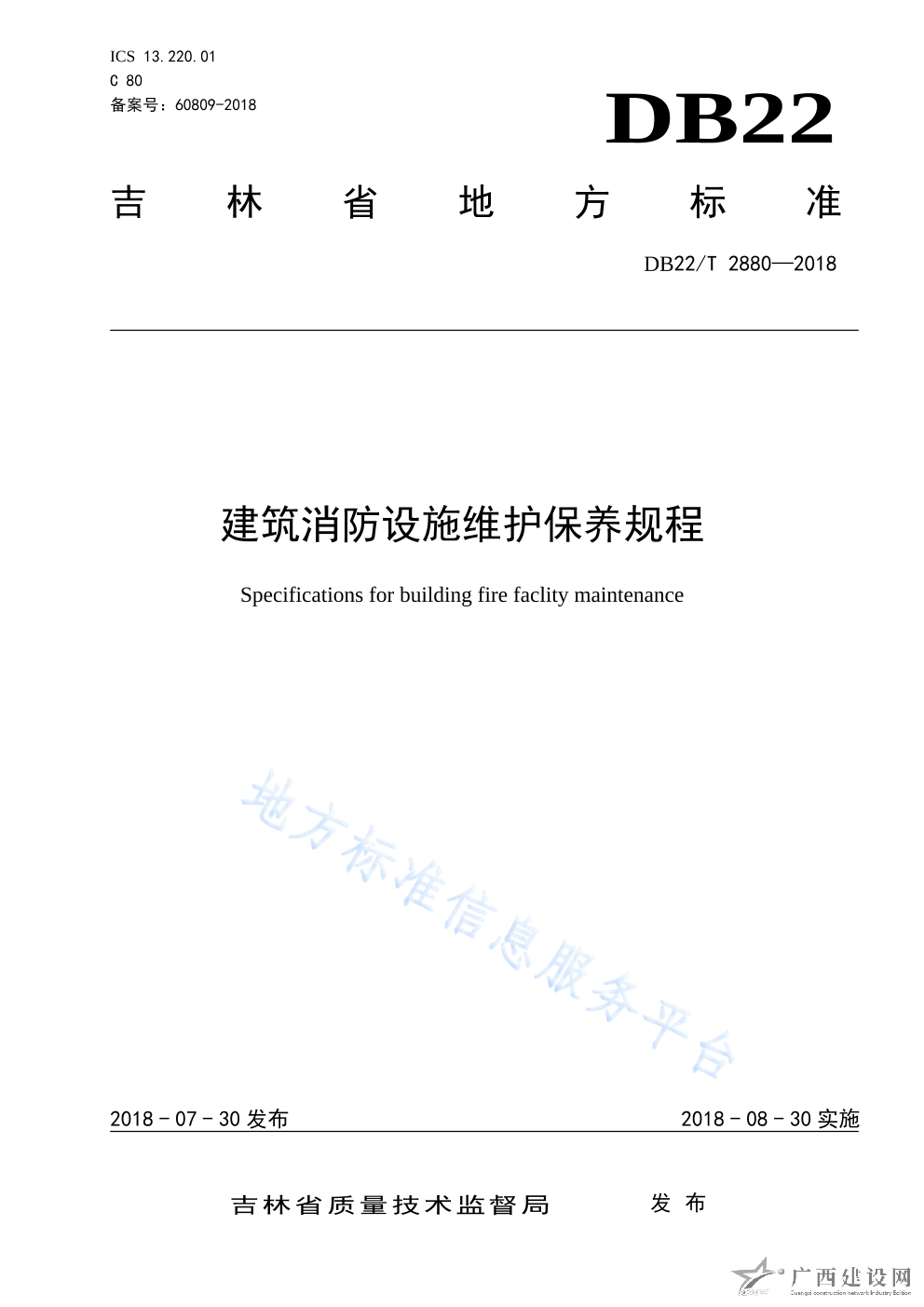 DB22 T2880-2018建筑消防設(shè)施維護(hù)保養(yǎng)規(guī)程