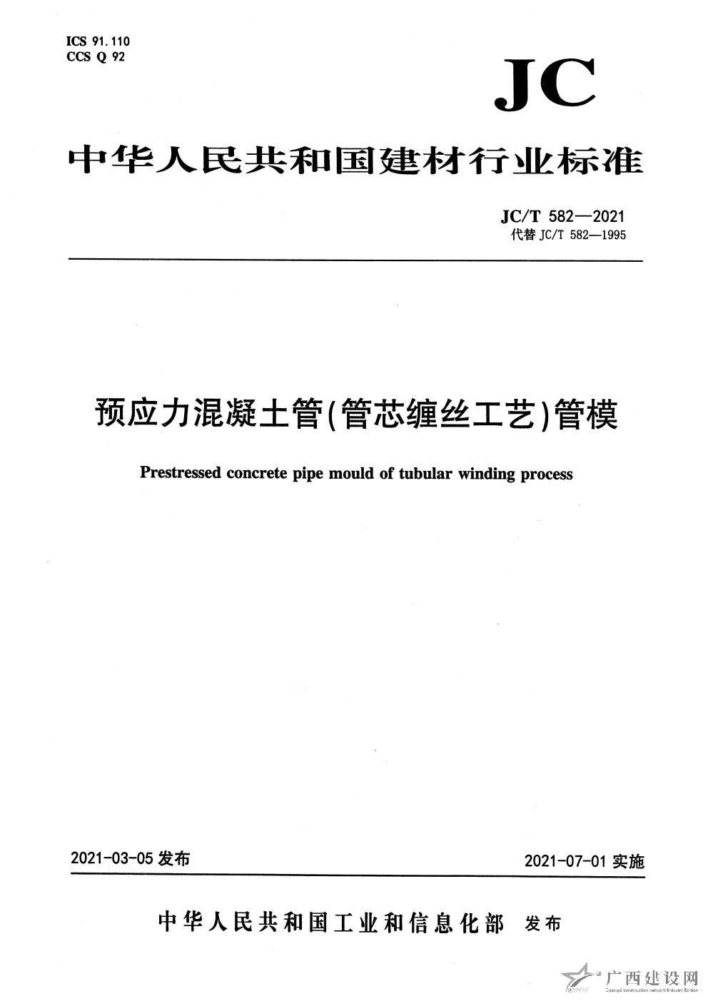 JC T 582-2021 預(yù)應(yīng)力混凝土管(管芯纏絲工藝)管模