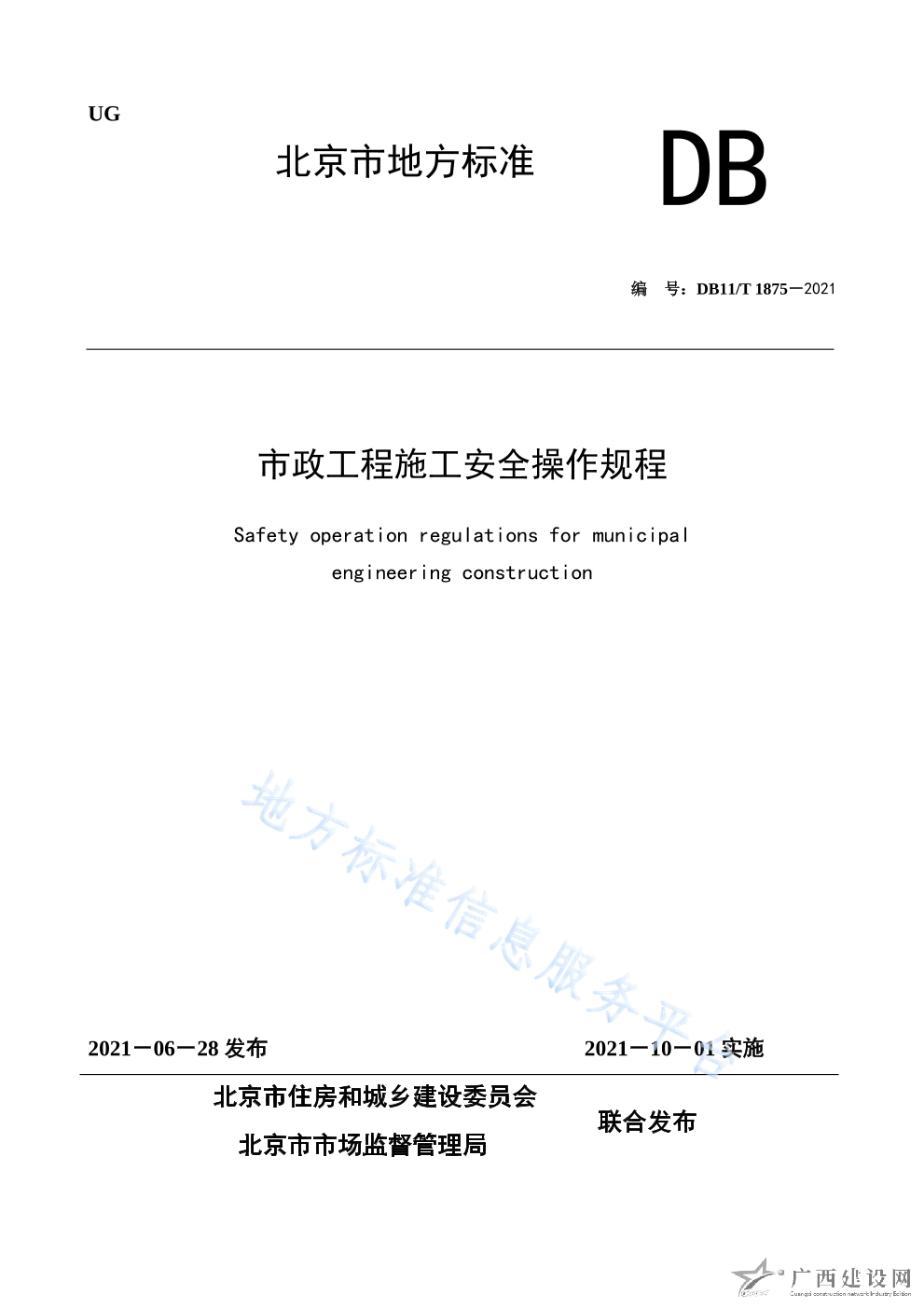 DB11 T+1875-2021市政工程施工安全操作規(guī)程