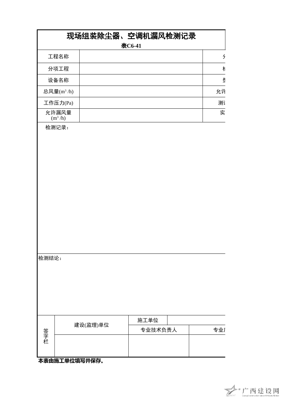 凈化空調系統測試記錄
