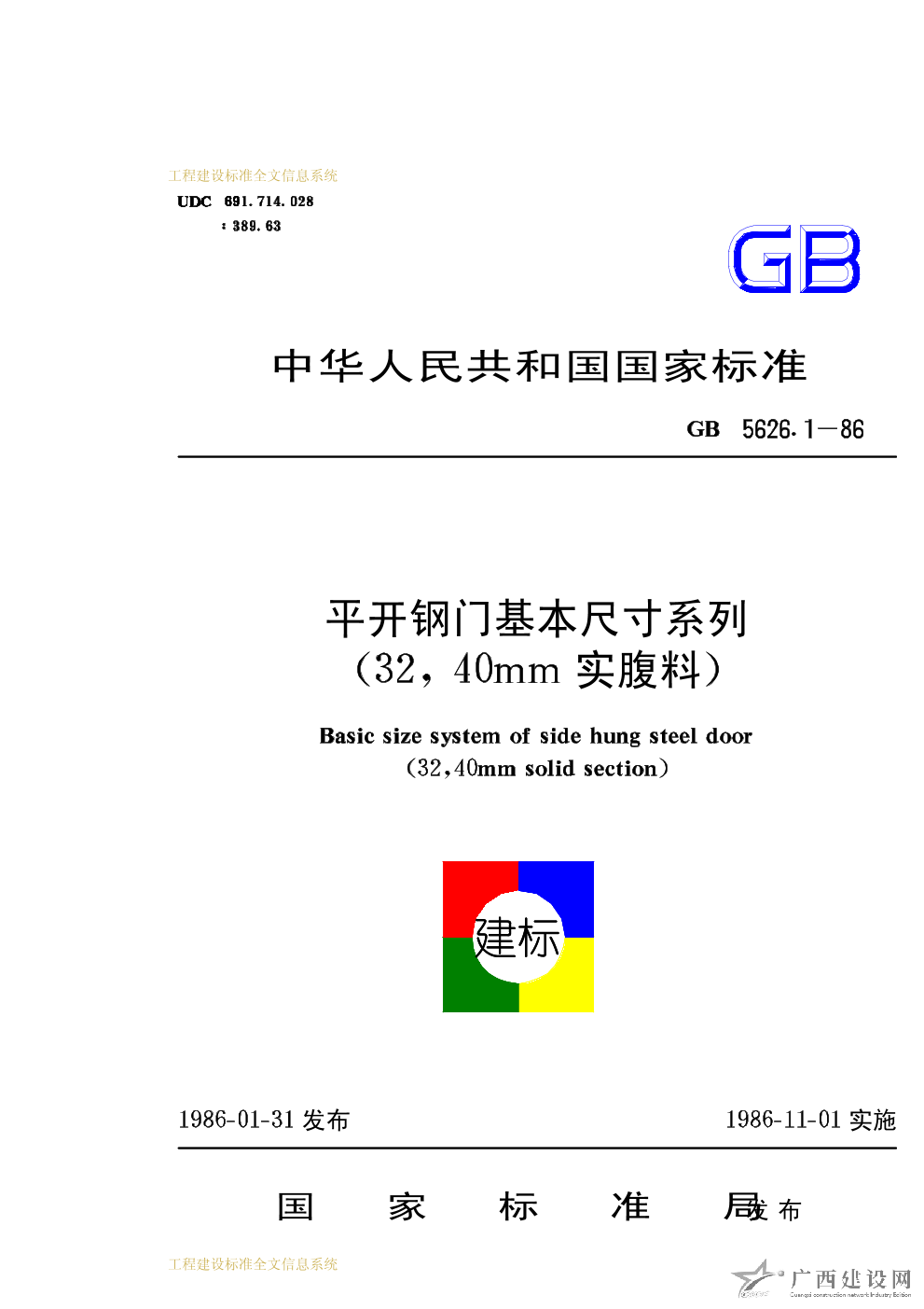 平開(kāi)鋼門(mén)基本尺寸系列(32,40mm實(shí)腹料) GB5626.1-86