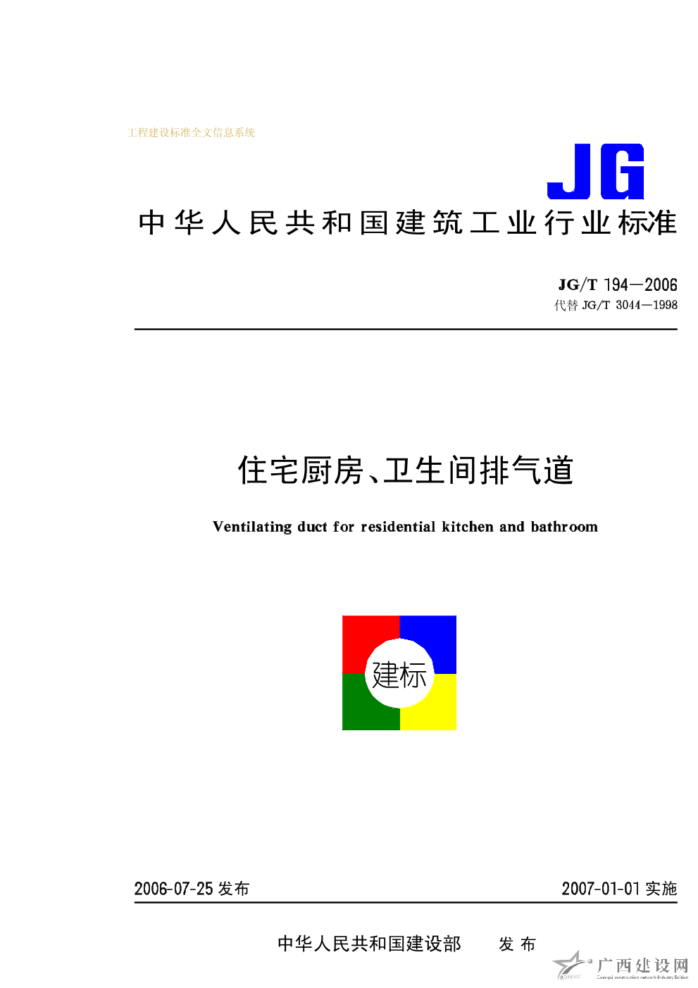 住宅廚房、衛(wèi)生間排氣道 JG/T194-2006