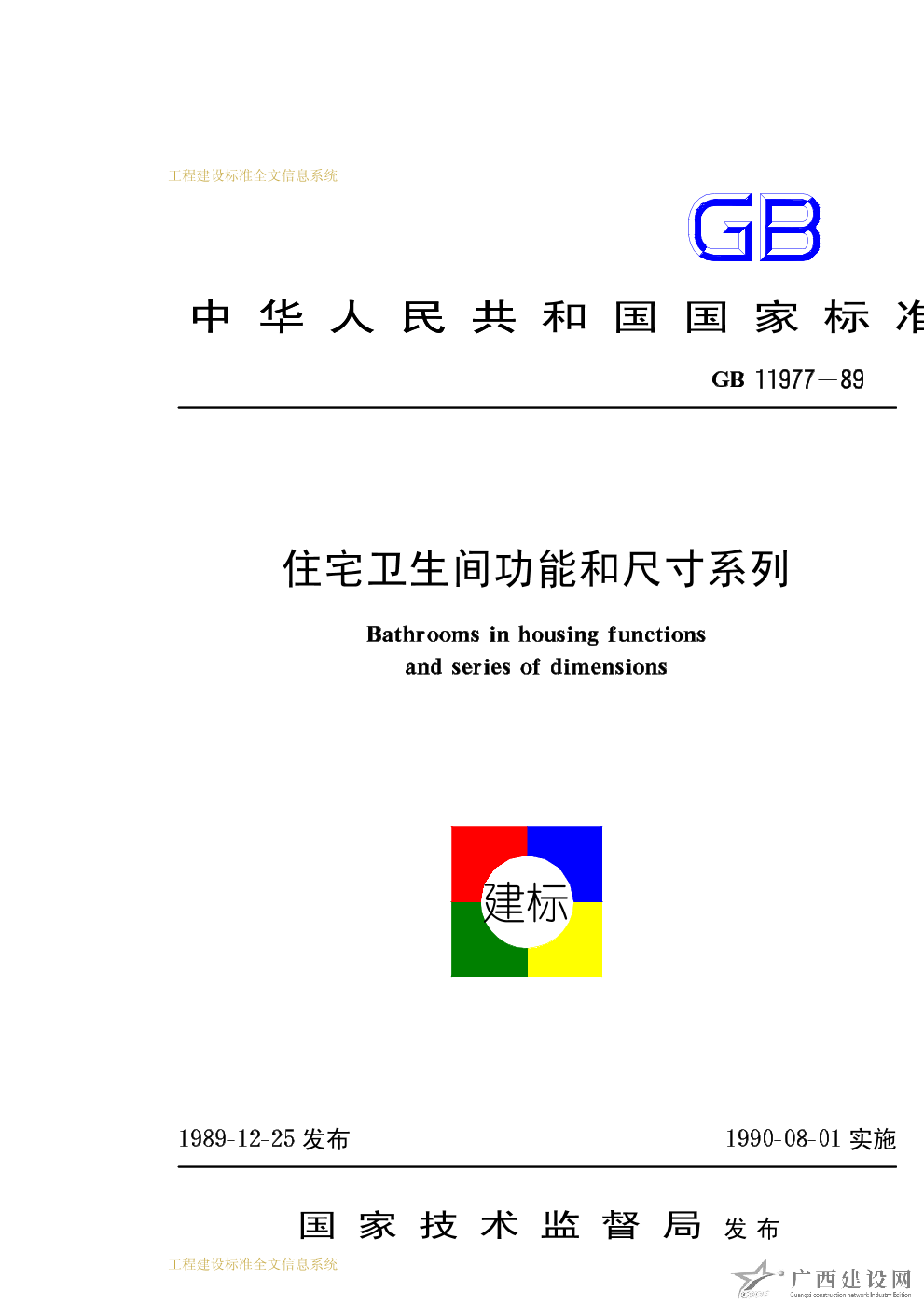 住宅衛(wèi)生間功能和尺寸系列 GB11977-89