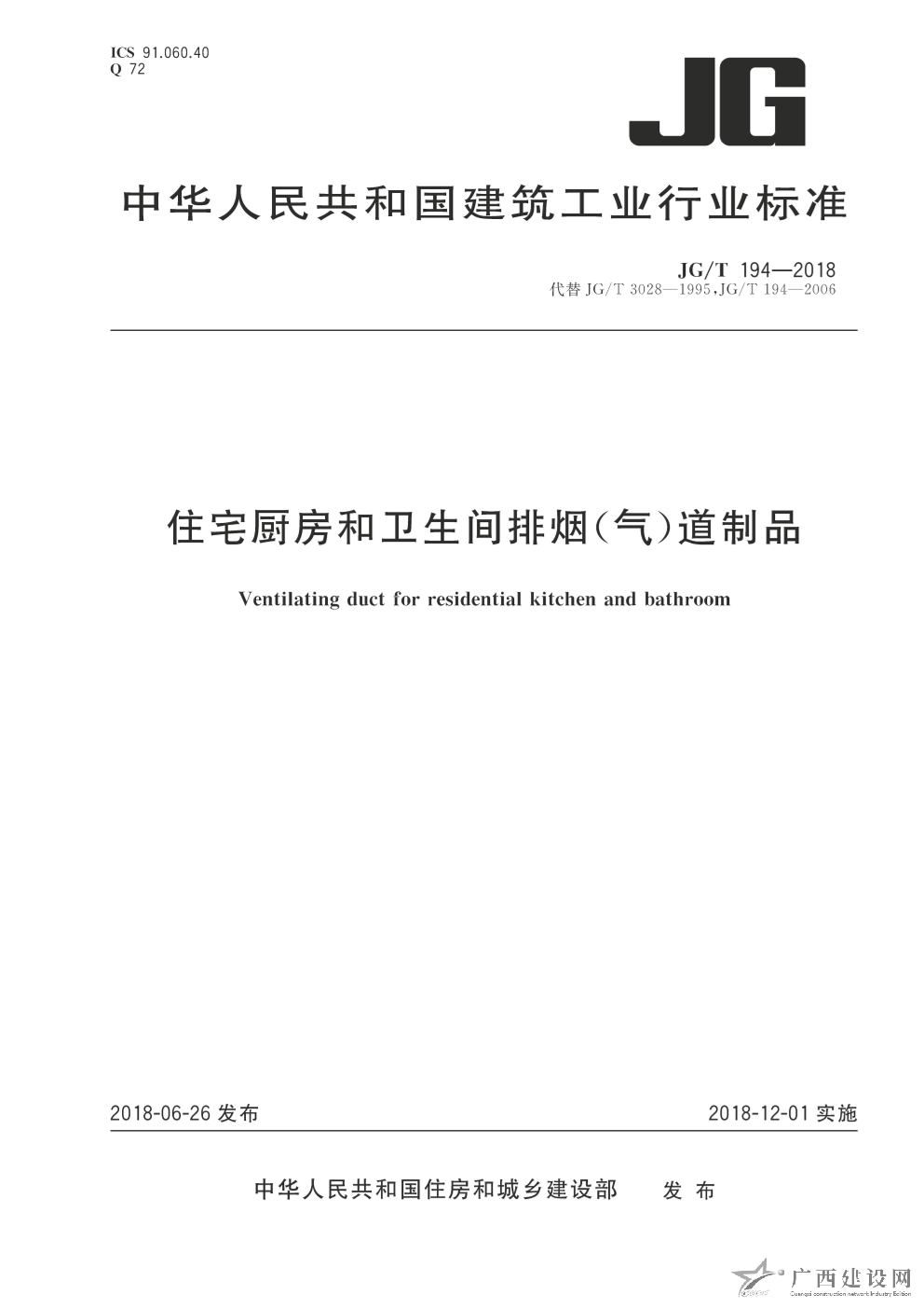 JG-T 194-2018:住宅廚房和衛(wèi)生間排煙(氣)道制品