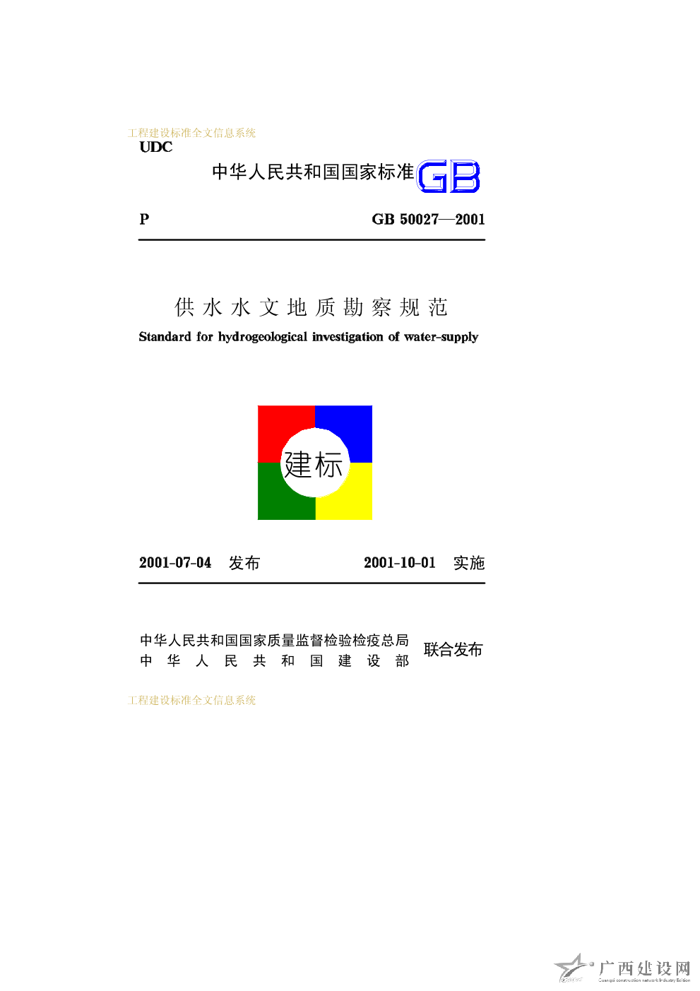 城市供水水文地質勘察規范 CJJ16—88