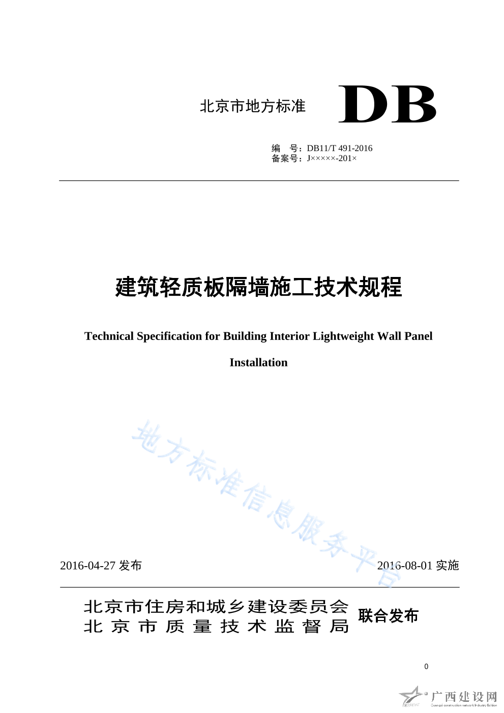 DB11 T+1668-2019輕鋼現澆輕質內隔墻技術規程