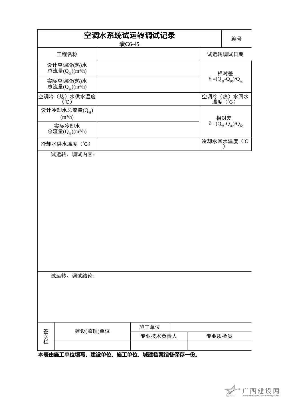 空調水系統試運轉調試記錄