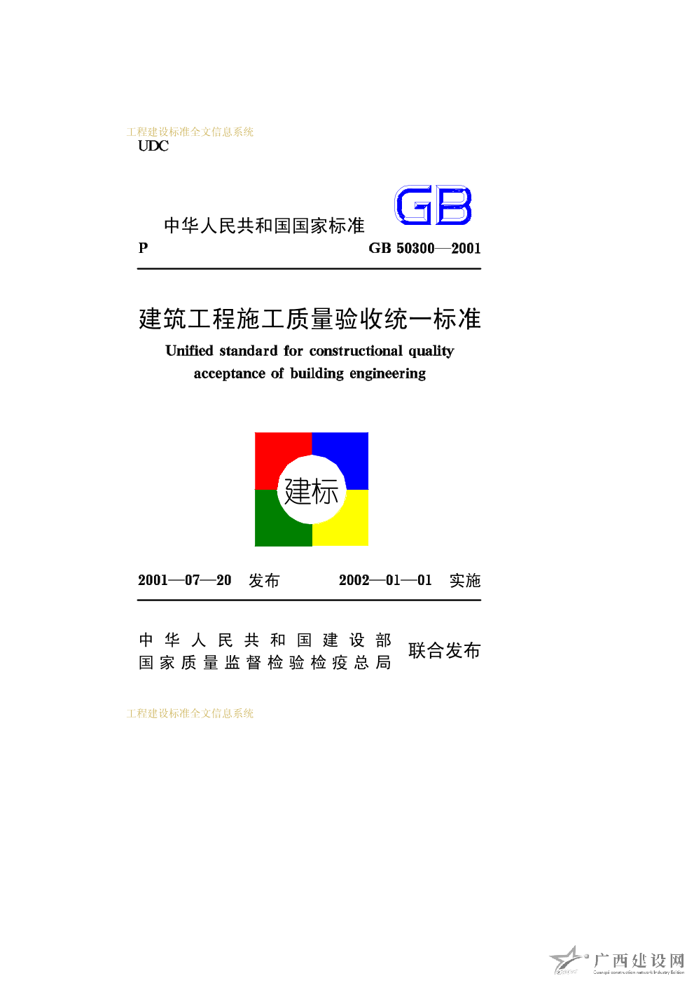 建筑工程施工質(zhì)量驗(yàn)收統(tǒng)一標(biāo)準(zhǔn) GB50300—2001