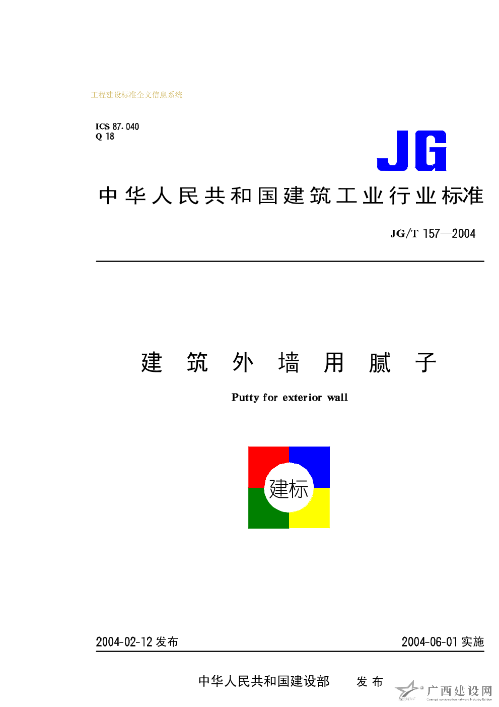 建筑外墻用膩子 JG/T157-2004