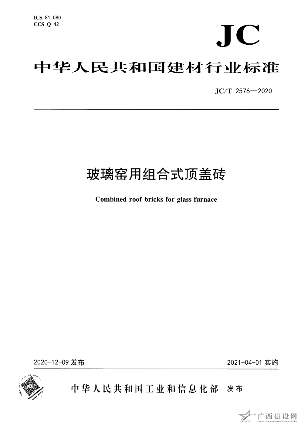 JC T2576-2020 玻璃窯用組合式頂蓋磚